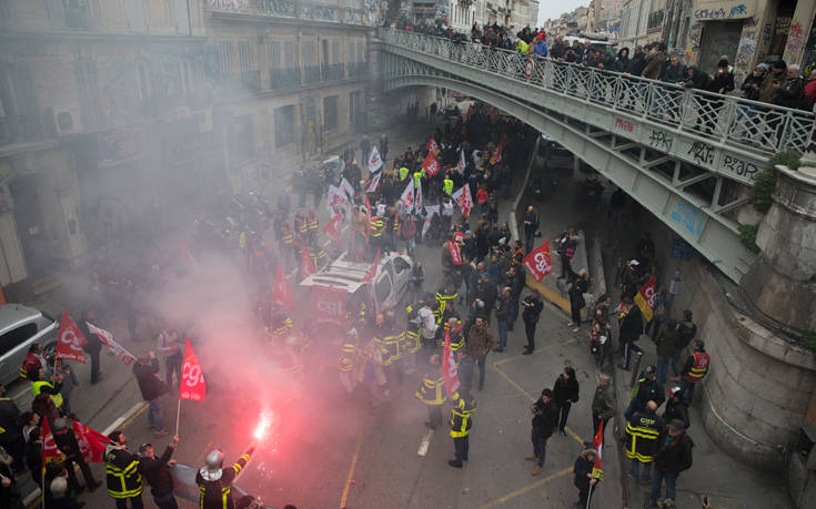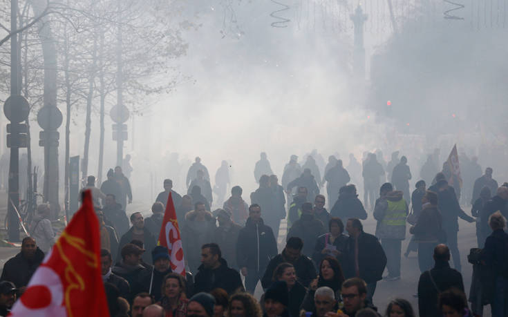 Η αστυνομία έκανε χρήση δακρυγόνων στη διάρκεια διαδήλωσης που οργάνωσαν τα συνδικάτα τα οποία αντιτίθενται στη μεταρρύθμιση.