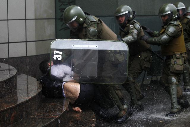 Οι διαδηλωτές, 80.000 σύμφωνα με τη Συνομοσπονδία Φοιτητών της Χιλής και 50.000 σύμφωνα με την αστυνομία , απαίτησαν να δοθεί τέλος στην «εκπαίδευση του τυράννου». Έγινε όμως πεδίο σοβαρών επεισοδίων, όταν συγκρούστηκαν εκατοντάδες κουκουλοφόροι διαδηλωτές οπλισμένοι με πέτρες και ξύλα με την αστυνομία που έκανε χρήση δακρυγόνων και εκτοξευτήρων νερού. Σύμφωνα με ανακοίνωση της αστυνομίας, περίπου 214 άνθρωποι συνελήφθησαν στη διάρκεια των επεισοδίων ενώ 34 αστυνομικοί τραυματίστηκαν.