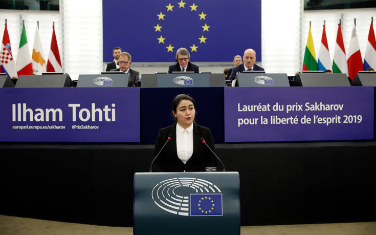 Η κόρη του φυλακισμένου ακτιβιστή για τα δικαιώματα των Ουιγούρων Ιλάμ Τότι παρέλαβε σήμερα εκ μέρους του πατέρα της το βραβείο του Ευρωπαϊκού Κοινοβουλίου, καλώντας τους ευρωβουλευτές να μην γίνουν «συνεργοί στη δίωξη των Ουιγούρων από την Κίνα».