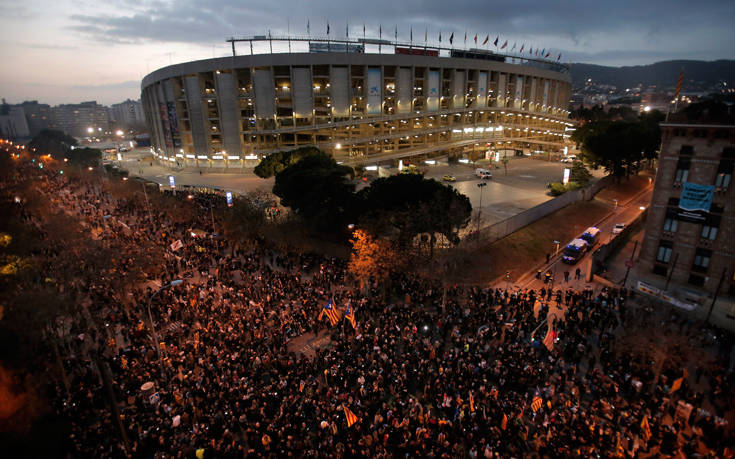 Εκατοντάδες Καταλανοί διαδηλωτές απέκλεισαν την Τετάρτη το απόγευμα τους δρόμους γύρω από το Καμπ Νου, το στάδιο της Μπαρτσελόνα, όπου απόψε το βράδυ πρόκειται να διεξαχθεί το clasico με τη Ρεάλ Μαδρίτης.