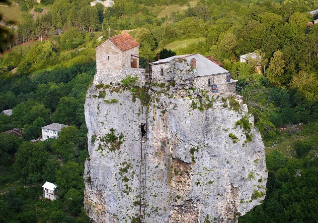 Ο σεβάσμιος μοναχός, χρησιμοποιεί για κατοικία μια εκκλησία που δεσπόζει στην κορυφή του βράχου Katskhi Pillar, 40 μέτρα πάνω από ένα μοναστήρι. Για να γίνει αντιληπτό το ύψος, ας σημειωθεί ότι η κατάβαση διαρκεί 20 λεπτά.
