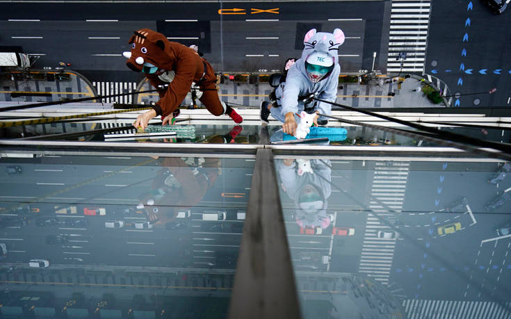 Δύο καθαριστές τζαμιών στην Ιαπωνία κάνουν την πάντα επικίνδυνη δουλειά τους ντυμένοι ο ένας αρουραίος και ο άλλος αγριόχοιρος, καθώς στο νέο ζωδιακό έτος το ένα ζώο θα διαδεχθεί το άλλο. Και μπορεί στα μάτια μας αυτή η εικόνα να ξενίζει, όμως στη χώρα του ανατέλλοντος ηλίου ό,τι προκαλεί έκπληξη στον υπόλοιπο κόσμο, εκεί θεωρείται…. φυσιολογικό.