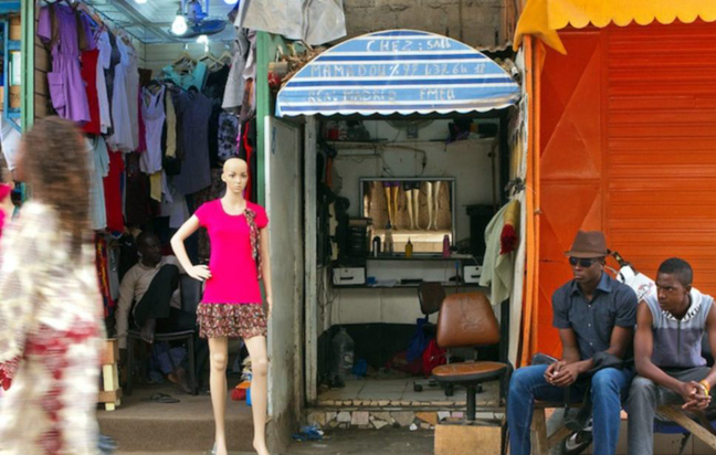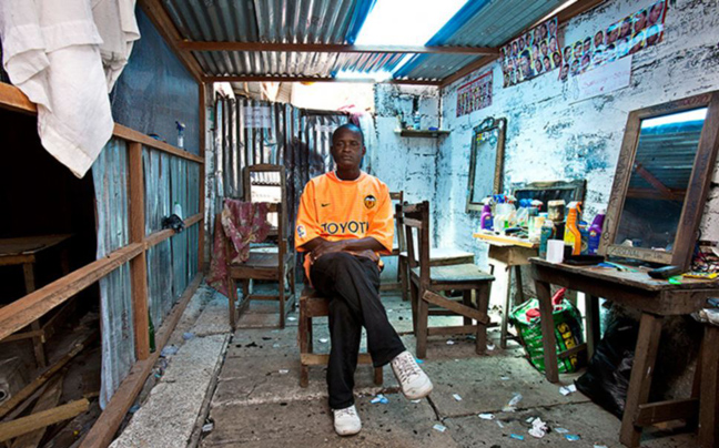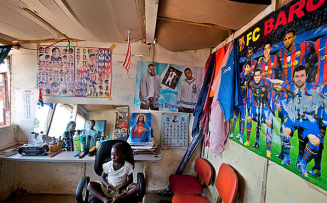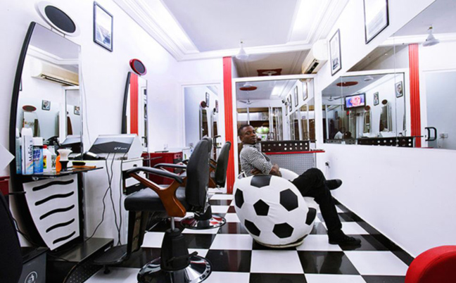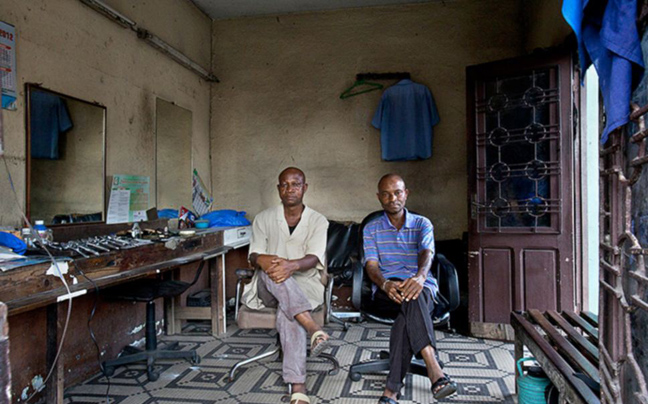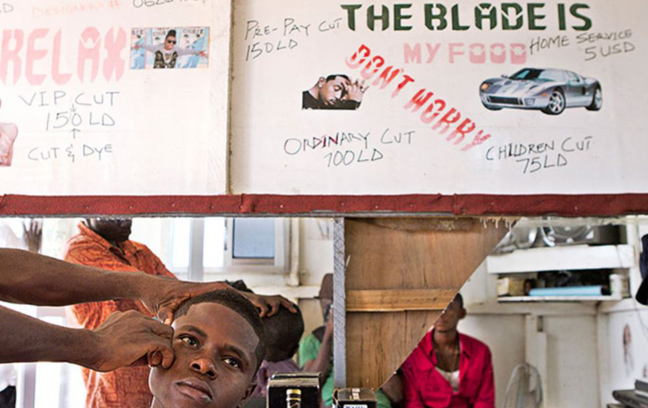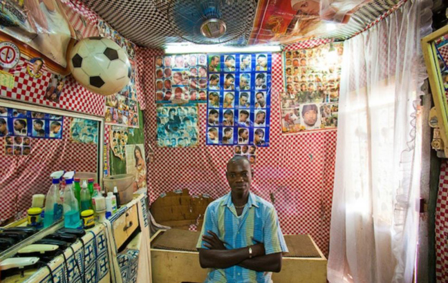 Με εξοπλισμό που άλλοτε θυμίζει Δύση και άλλοτε κινείται στα όρια του βασικού, οι φωτογραφίες του Esiebo δείχνουν το πώς τα κουρεία αποτελούν σημείο κοινωνικοποίησης, χαλάρωσης και κοινωνικής επαφής στη δυτική Αφρική.