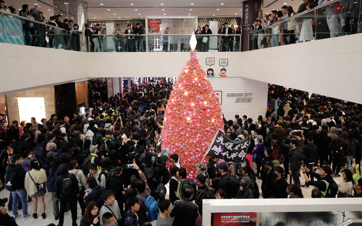 Οι κινητοποιήσεις στο Χονγκ Κονγκ συνεχίστηκαν και την παραμονή των Χριστουγέννων. Μπορεί πολλοί από τους διαδηλωτές να φορούσαν μάσκες και κέρατα ταράνδου, ωστόσο η Αστυνομία έκανε χρήση δακρυγόνων εναντίον τους, έπειτα από συμπλοκές σε εμπορικά κέντρα και σε μια τουριστική συνοικία.