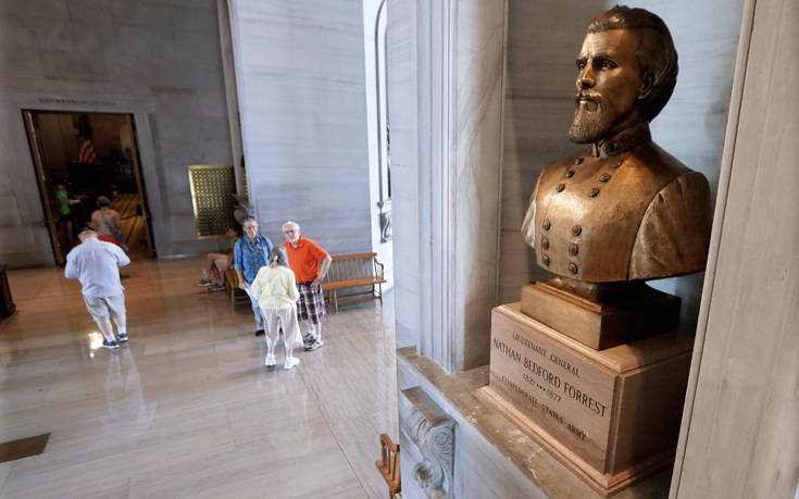 Από το 1978, οι επισκέπτες της πόλης Πίτμαν Σέντερ στο Τενεσί των ΗΠΑ, στην έδρα του κυβερνήτη της πολιτείας, αντικρίζουν μια προτομή του Νέιθαν Μπέντφορντ Φόρεστ, πρώην στρατηγού της Συνομοσπονδίας στον Αμερικανικό Εμφύλιο Πόλεμο και ένας από τους πρώτους ηγέτες της Κου Κλουξ Κλαν (KKK).