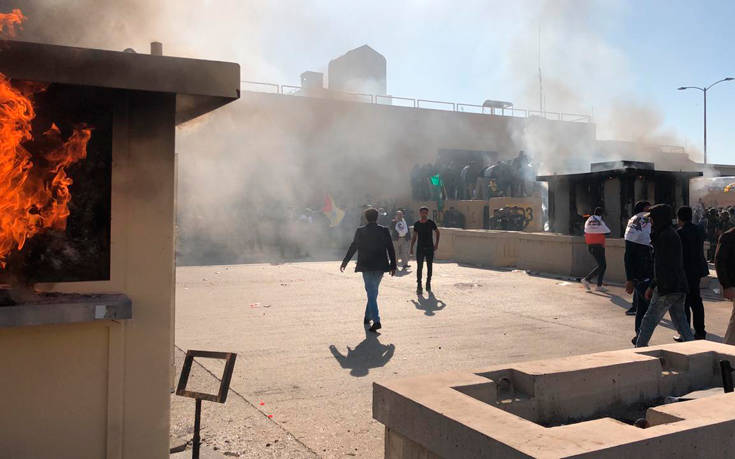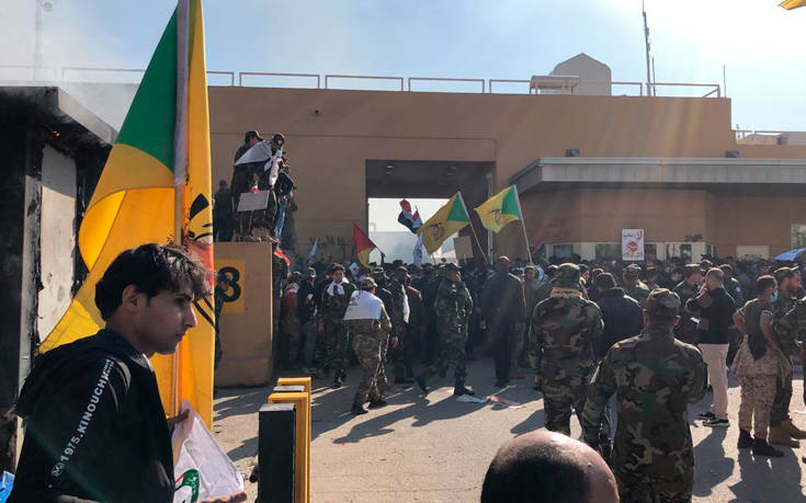 Οι διαδηλωτές, ο οποίοι συμμετείχαν αρχικά στην κηδεία των 25 φιλοϊρανών μαχητών που σκοτώθηκαν την Κυριακή από τις αμερικανικές επιδρομές στο Ιράκ, κατάφεραν να περάσουν τον πρώτο περίβολο του γιγάντιου συγκροτήματος της πρεσβείας που βρίσκεται μέσα στην αυστηρά φυλασσόμενη Πράσινη Ζώνη της Βαγδάτης. Στη συνέχεια δέχθηκαν δακρυγόνα προερχόμενα από το εσωτερικό της πρεσβείας.