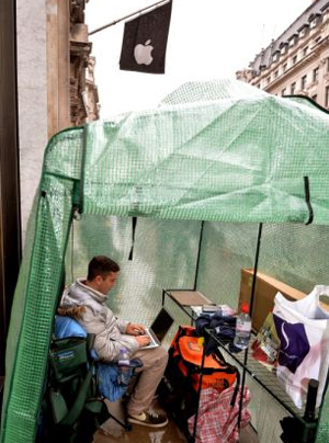 Πρόκειται για τον 17χρονο Gad Harari που κατασκήνωσε από τη Δευτέρα έξω από το κατάστημα της Regent Street και, όπως λέει στη Daily Mail, η μόνη περίπτωση να εγκαταλείψει το πόστο του είναι αν κάποιος του προσφέρει ένα τετραψήφιο ποσό.