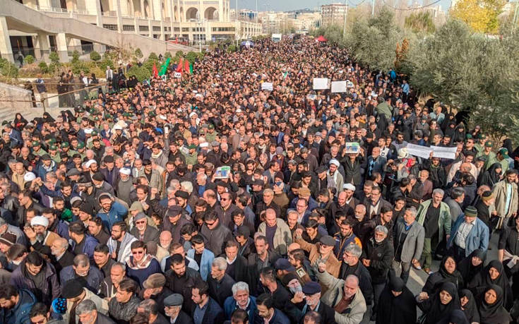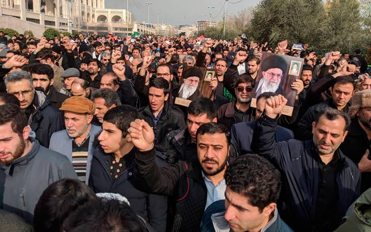 Στους δρόμους έχουν βγει δεκάδες χιλιάδες άτομα στην Τεχεράνη οι οποίοι διαδηλώνουν για τον θάνατο του στρατηγού Κασέμ Σουλεϊμανί.
