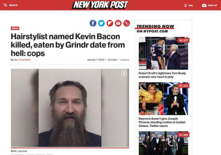 Ο 25χρονος hairstylist ονόματι Κέβιν Μπέικον συνάντησε τον κατηγορούμενο ως δολοφόνο του Mark Latunski την παραμονή των Χριστουγέννων, κι αφού είχαν συνομιλήσει μέσω της εφαρμογής, όπως αναφέρει η New York Post.