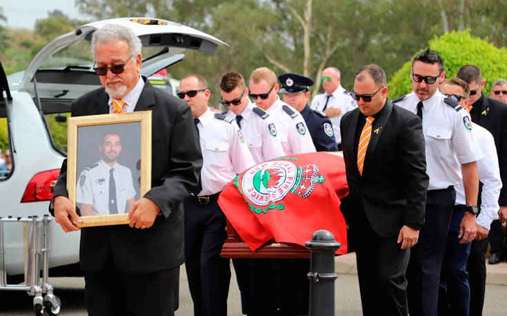Η μικρή, ντυμένη στα λευκά, παραβρέθηκε στην κηδεία του μπαμπά της, όπου και έλαβε από τον διοικητή της Πυροσβεστικής Shane Fitzsimmons το κράνος του και ένα μετάλλιο, σύμφωνα με το Sky News.