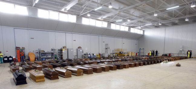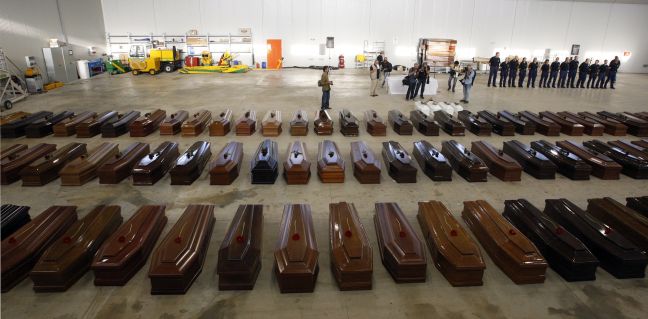 Οι φωτογραφίες από τη μεγαλύτερη τραγωδία στην ιστορία της Ιταλίας σοκάρουν. Παρατεταγμένα στη σειρά τα φέρετρα αποτυπώνουν την αίσθηση του θανάτου που έχει βυθίσει στο πένθος τους Ιταλούς. Ακόμη μεγαλύτερος ο πόνος για τους γονείς που έχασαν τα παιδιά τους και τα αποχαιρετούν μέσα από τα λευκά φέρετρα.