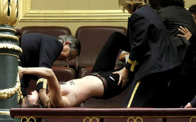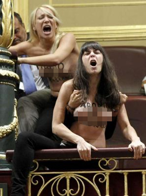 Στην Μαδρίτη, οι γνωστές σε όλο τον πλανήτη «Femen» προέβησαν στη συνηθισμένη τους διαμαρτυρία πετώντας τα ρούχα τους, αλλά αυτή τη φορά επέλεξαν το ισπανικό κοινοβούλιο!