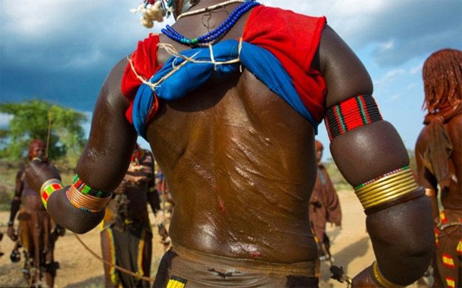 Μεγάλα κόκκινα και μαύρα σημάδια καλύπτουν τις πλάτες των γυναικών που ανήκουν στη φυλή Hamar της Αιθιοπίας στο πλαίσιο μιας κληρονομιάς που θέλει τις γυναίκες να δέχονται βάναυσο ξυλοδαρμό από τους άντρες.