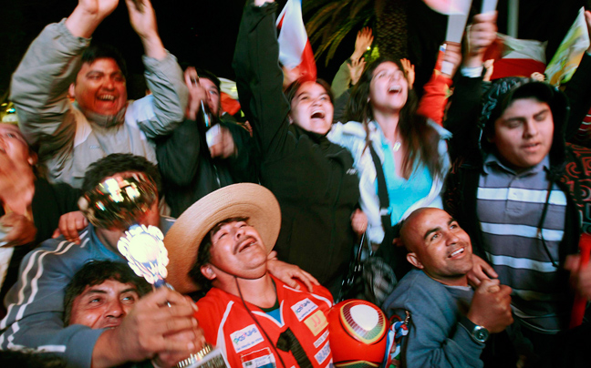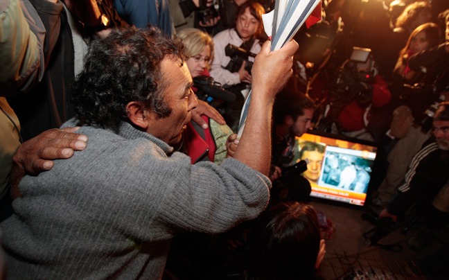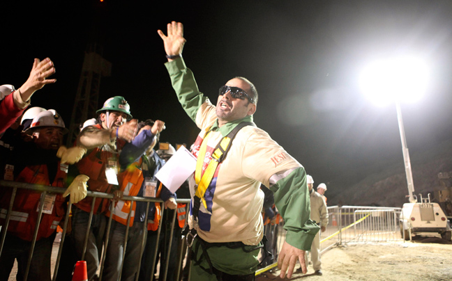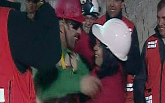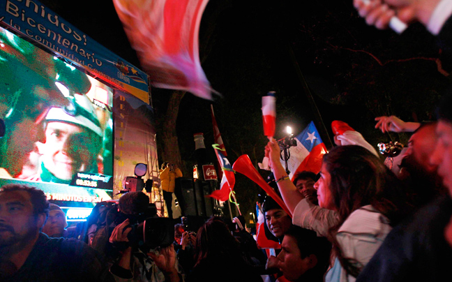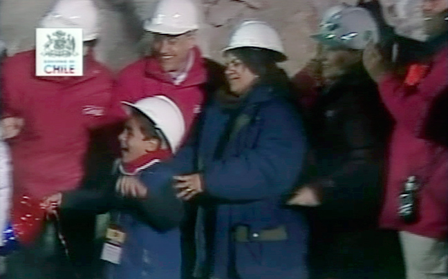 Ενθουσιασμός και συγκίνηση ήταν τα συναισθήματα που επικρατούσαν έξω από το ορυχείο Σαν Χοσέ μόλις ανέβηκε στην επιφάνεια ο πρώτος μεταλλωρύχος.