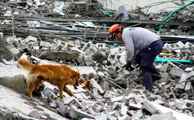 Στις έρευνες συμμετέχουν εξήντα διασώστες με ειδικά εκπαιδευμένα σκυλιά ωστόσο η σφοδρή βροχόπτωση και οι φόβοι για νέα κατάρρευση δυσκολεύουν το έργο τους.