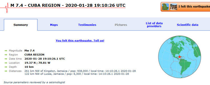 Πολύ ισχυρός σεισμός σημειώθηκε πριν από λίγο στην Καραϊβική, σε θαλάσσιο χώρο ανάμεσα στην Κούβα, τη Τζαμάικα και τις νήσους Κέιμαν.