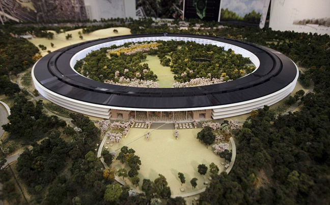Πρόκειται για το Apple Campus 2 που έχει ήδη αποκτήσει το παρατσούκλι «το διαστημόπλοιο της Apple» το οποίο η εταιρεία έχει ξεκινήσει να χτίζει και που όταν ολοκληρωθεί θα αποτελεί ένα μοναδικό θαύμα αρχιτεκτονικής και βασίζεται σε σχέδιο του διάσημου αρχιτέκτονα Sir Norman Foster.