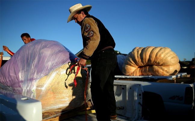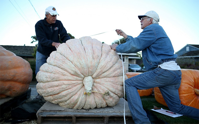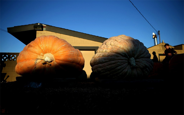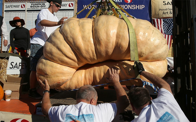 Πρόκειται για τις γιγαντιαίες κολοκύθες που συμετείχαν στο 40ό διαγωνισμό «Safeway World Championship Pumpkin Weigh-Off » που πραγματοποιείται στο Half Moon Bay της Καλιφόρνια.