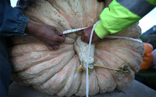 Αυτές οι κολοκύθες φαίνονται να έρχονται από κάποιο άλλο πλανήτη, αφού οι διαστάσεις τους είναι σχεδόν τριπλάσιες από τις κανονικές.