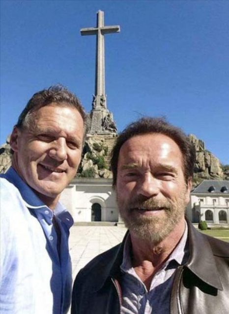 Ο Σβαρτσενέγκερ, ο οποίος επισκέφθηκε την Ισπανία για να εγκαινιάσει ένα αθλητικό τουρνουά που φέρει το όνομά του, εισήλθε στο ναό. Η επίσκεψή του, είπε ο Λινάρες, δεν σημαίνει ότι οι ηθοποιός ταυτίζεται ιδεολογικά με τον Φράνκο.