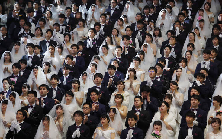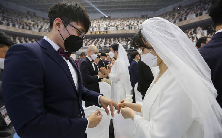 Πολλά ζευγάρια από όλο τον κόσμο -κυρίως από ασιατικές χώρες- συγκεντρώθηκαν σε εμπορικό κέντρο της Γκαπιεόνγκ, στη Νότια Κορέα, προκειμένου να ενωθούν με τα δεσμά του γάμου σε μια μαζική τελετή.