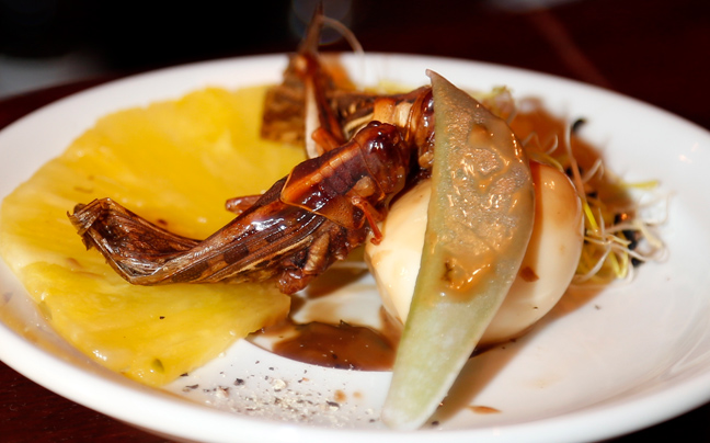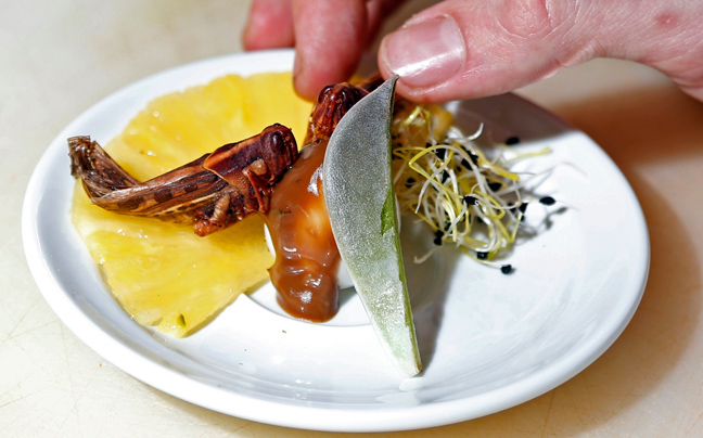 Ο Γάλλος σεφ Elie Daviron χρησιμοποιεί ως πρώτη ύλη έντομα που έρχονται συντηρημένα σε αλάτι και σφραγισμένα σε ειδικές συσκευασίες από την Ταϊλάνδη.