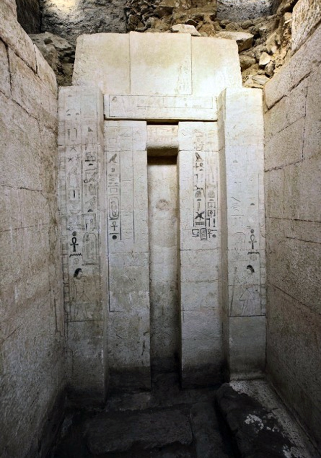 Στην πλευρά που οδηγεί στον τάφο βρέθηκε μια ψεύτικη πόρτα που αναγράφει το επάγγελμα του ενταφιασμένου καθώς και το ψευδώνυμο «αρχιερέας-μάγος» που είχε δοθεί στον αρχίατρο.