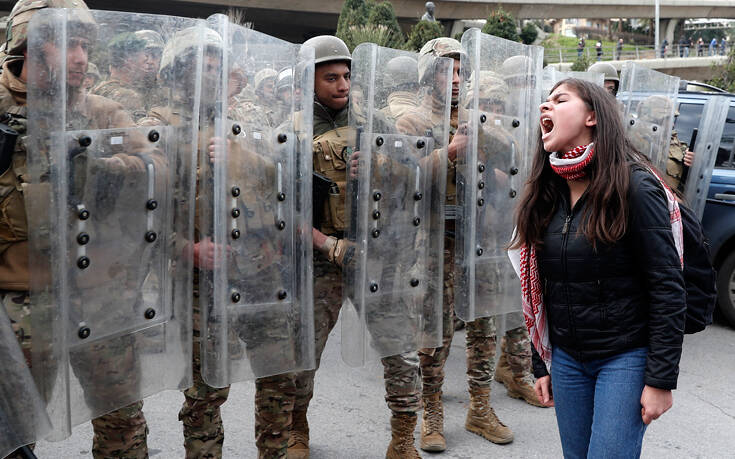 Σε κενό εξουσίας βρίσκεται τις τελευταίες ημέρες ο Λίβανος, με τις έντονες πολιτικές αντιπαραθέσεις να συνεχίζονται, την ώρα που στην ατμόσφαιρα υπάρχει μια… μυρωδιά εμφυλίου. Μια νεαρή διαδηλώτρια φωνάζει μπροστά από άνδρες των σωμάτων ασφαλείας της χώρας, με τη σκηνή να φέρνει κάτι από κόμικ με πρωταγωνιστή τον Αστερίξ, που δεν φοβάται τους καλά προστατευμένους Ρωμαίους.