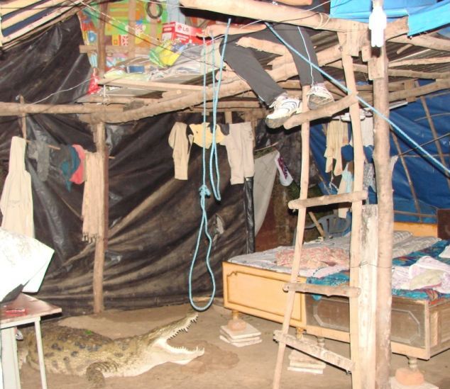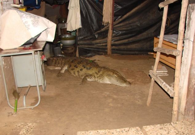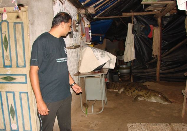 Όταν ο Kanubhai Sholiki άναψε το φως μέσα στη μικρή καλύβα του στο χωριό Vadaili στο κρατίδιο Gujarat ανακάλυψε ότι ένας τεράστιος κροκόδειλος είχε μπει μέσα σε αυτήν.