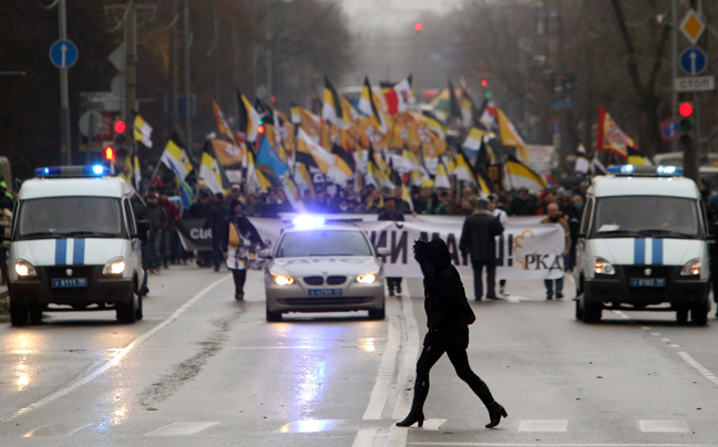 Χιλιάδες Ρώσοι εθνικιστές κάνουν σήμερα πορείες στη Μόσχα και άλλες ρωσικές πόλεις κατά την ετήσια διαδήλωση διαμαρτυρίας για την παρουσία μεταναστών από τις πρώην σοβιετικές δημοκρατίες, εν μέσω εντάσεων ύστερα από τις πρόσφατες ταραχές που προκλήθηκαν από τη δολοφονία ενός Ρώσου από έναν Αζέρο.
