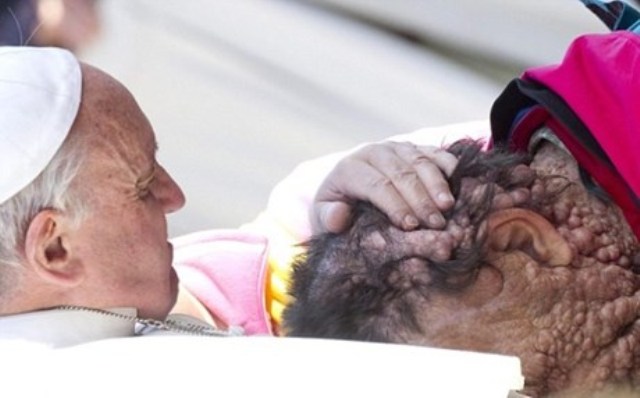 Μια αγκαλιά μεγαλοσύνης και αγάπης άνοιξε ο Πάπας Φραγκίσκος σε έναν παραμορφωμένο άνδρα, καλυμμένο με νεοπλασίες, λόγω γενετικής ανωμαλίας.