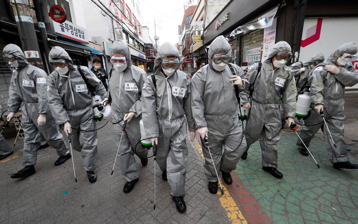 Κοντά στα 6.000 είναι τα επιβεβαιωμένα κρούσματα του φονικού ιού στη Νότια Κορέα, με τους νεκρούς να είναι τουλάχιστον 35, ενώ αναμένεται να αυξηθούν. Στρατιώτες της χώρας έχουν βγει στους δρόμους των πόλεων, όπως η πρωτεύουσα Σεούλ, με τα ειδικά σύνεργα στα χέρια τους και φυσικά φορώντας τις απαραίτητες στολές. Η εικόνα δημιουργεί ευλόγως περίεργα συναισθήματα.