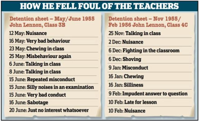 Όπως αναφέρει η Daily Mail, που δημοσιεύει και τα σχολικά έγγραφα το ιδρυτικό μέλος των Beatles φοιτούσε στο λύκειο Quarry Bank του Λίβερπουλ και δεν ήταν λίγες οι φορές, που οι καθηγητές του αναγκάζονταν να τον τιμωρήσουν, ενώ επισημαίνεται ότι ήτα ιδιαίτερα αδιάφορος για τα μαθήματα.