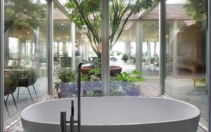 Τόσο ο σχεδιασμός όσο και η πανούργα χρήση των υλικών κατασκευής της την κάνουν να μπολιάζεται εντελώς με το τοπίο.
