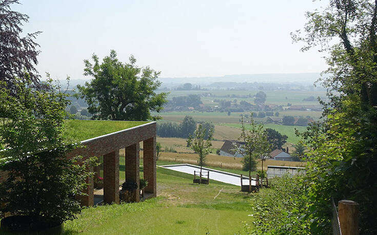 Ενσωματωμένη μέσα σε μια πλαγιά όρους του Βελγίου, η Sloped Villa περνά εντελώς απαρατήρητη από τον δρόμο.