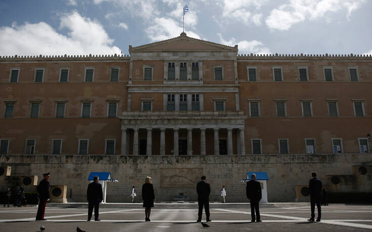 Μια ιδιαίτερη εικόνα απαθανάτισαν οι φωτογραφικοί φακοί κατά τη διάρκεια της τελετής εορτασμού για την επέτειο της 25ης Μαρτίου. Ο πρωθυπουργός και οι πολιτικοί αρχηγοί, όταν έφτασαν στον Άγνωστο Στρατιώτη, κράτησαν την απαραίτητη απόσταση μεταξύ τους, όχι λόγω ιδεολογικών διαφορών, αλλά ελέω κορονοϊού.