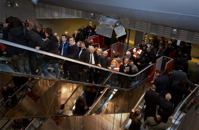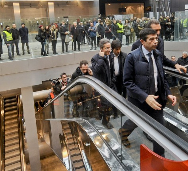 Συγκεκριμένα οι κυλιόμενες σκάλες που οδηγούν στον πρώτο όροφο του σταθμού σταμάτησαν να λειτουργούν κατά τη διάρκεια της επίσημης παρουσίασης από τον υπουργό Μεταφορών Μαουρίτσιο Λούπι, τον δήμαρχο της πόλης Λουίτζι ντε Ματζίστρις και το νομάρχη Στέφανο Καλντόρο.