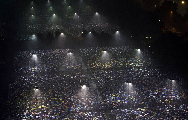 Δεκάδες χιλιάδες κόσμου συμμετέχουν με κεριά, μέσα σε σφοδρή βροχόπτωση, στις εκδηλώσεις μνήμης για την 24η επέτειο των αιματηρών γεγονότων της πλατείας του Πεκίνου το 1989: Victoria Park, Χονγκ Κονγκ, 4 Ιουνίου…