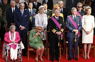 Οι γαλαζοαίματοι του Βελγίου, η βασίλισσα Fabiola, η βασίλισσα Paola, ο βασιλιάς Albert II, ο εστεμμένος πρίγκιπας Philippe και η εστεμμένη πριγκίπισσα Mathilde (πρώτη σειρά, από αριστερά προς τα δεξιά), κατά τη διάρκεια των πανηγυρικών εκδηλώσεων για την 20ή επέτειο της βασιλείας του Albert…