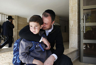 Ισραηλινός αστυνομικός σέρνει υπερ-ορθόδοξο άντρα στις συμπλοκές που σημειώθηκαν στην πόλη Beit Shemesh, κοντά στην Ιερουσαλήμ, στις 12 Αυγούστου.
