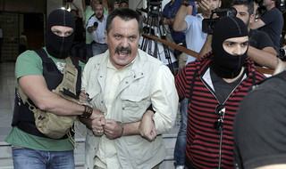 Στα δικά μας και πάλι, ο βουλευτής της Χρυσής Αυγής Χρήστος Παπάς με χειροπέδες έξω από τη ΓΑΔΑ στις 29 Σεπτεμβρίου, αντιμετωπίζοντας κατηγορίες για σύσταση εγκληματικής οργάνωσης…