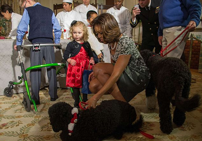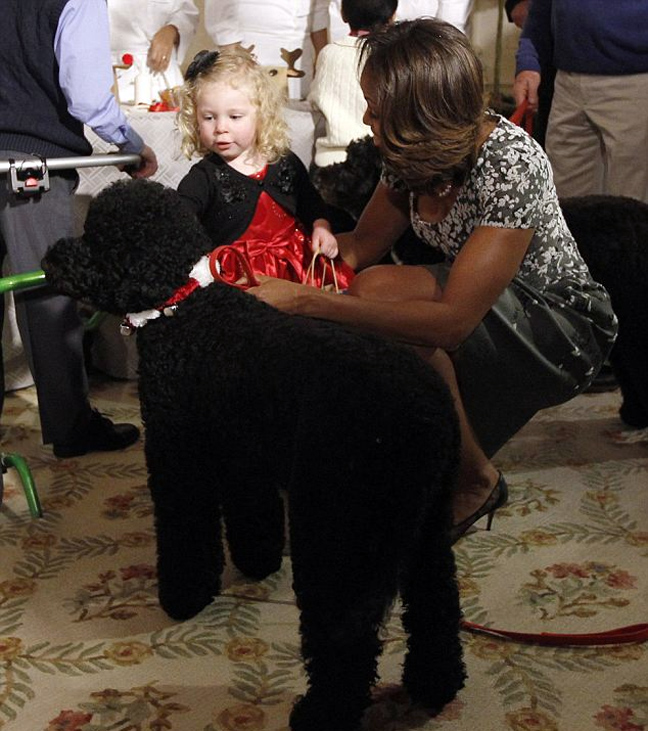 Η Sunny, το ενός έτους σκυλί που απέκτησαν το καλοκαίρι οι Ομπάμα, μπήκε χοροπηδώντας στο δωμάτιο που ήταν γεμάτο από παιδιά και πήγε κατευθείαν πάνω στη μικρή Ashtyn Gardner. Μέσα σε μια στιγμή η 2χρονη με τα καλά της ρούχα και τις ξανθές μπούκλες της- οι γονείς της οποία υπηρετούν στο Ναυτικό- βρέθηκε στο πάτωμα.