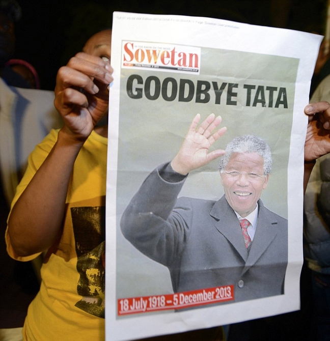 Με τραγούδια για την ελευθερία έξω από το σπίτι του Νέλσον Μαντέλα αποχαιρετούν οι πολίτες της Νότιας Αφρικής τον «Μαντίμπα» και τιμούν τη ζωή του ανθρώπου που έδωσε αγώνα για την ειρήνη και την ισότητα στη χώρα μέχρι το θάνατό του, χθες βράδυ, στα 95 του χρόνια.