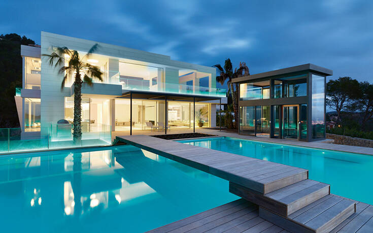 Μια κραυγαλέα θα έλεγε κανείς κατοικία στη Μαγιόρκα, απλώνεται σε τρεις ορόφους, οι οποίοι εκτείνονται σε όλη την πλαγιά μιας πανάκριβης συνοικίας του νησιού.