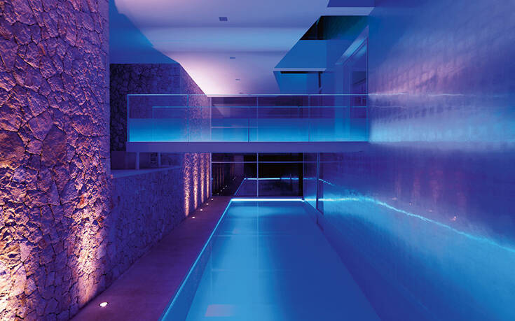Ένα τούνελ συνδέει το κυρίως σπίτι με ένα ιδιωτικό κέντρο ευεξίας, την ίδια ώρα που μια άλλη μαγεία ξετυλίγεται στην ταράτσα, εκεί όπου δεσπόζουν οι 3 θερμαινόμενες πισίνες.
