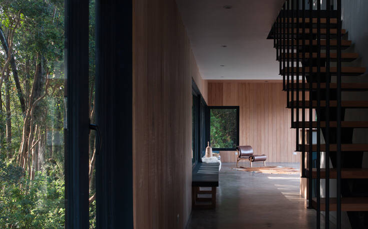 Ο στόχος ήταν το ηλιακό φως, να βρεθεί τρόπος να εισβάλει στο σπίτι παρά την πυκνότητα των δέντρων.