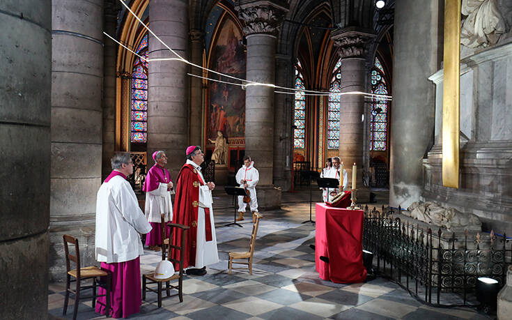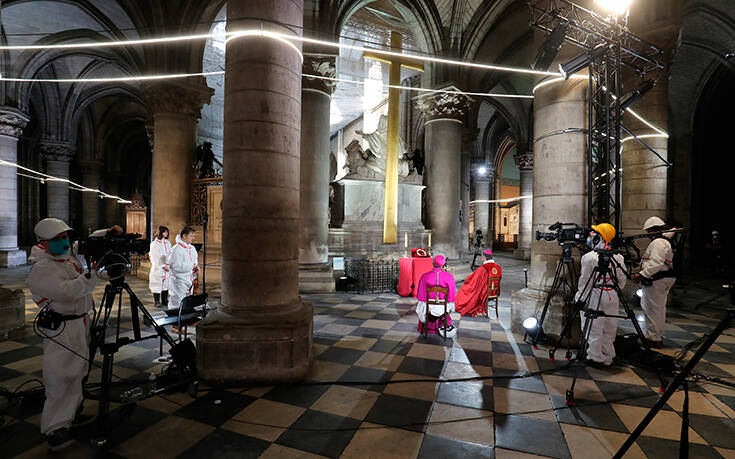Σχεδόν έναν χρόνο μετά την καταστροφική φωτιά στον καθεδρικό ναό της Παναγίας των Παρισίων, ο αρχιεπίσκοπος της γαλλικής πρωτεύουσας τέλεσε τη λειτουργία για τη Μεγάλη Παρασκευή των Καθολικών και προσευχήθηκε για την ανακούφιση της χώρας από τον κορονοϊό.