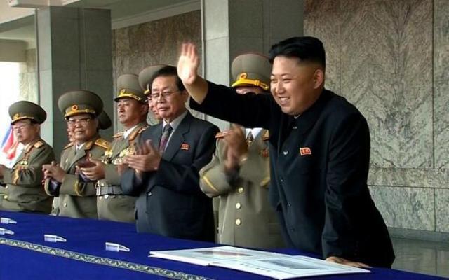 Στη φωτογραφία ο Γιανγκ Σονγκ-Τάεκ είναι ο άνθρωπος με το κοστούμι αριστερά του ανηψιού του, ηγέτη τη Β. Κορέας.