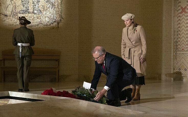 “Οι εκδηλώσεις μνήμης σήμερα θα είναι μικρές, ήσυχες και από το σπίτι”, δήλωσε απευθυνόμενος στους Αυστραλούς πολίτες ο πρωθυπουργός τους Σκοτ Μόρισον. Αυτός ήταν ένας από τους ελάχιστους στους οποίους επετράπη να παραστούν σε τελετή που έγινε στην Καμπέρα στο μνημείο πεσόντων.