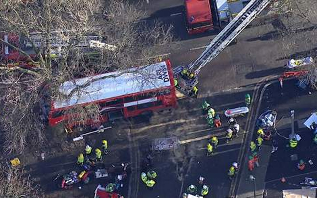 Τουλάχιστον δέκα εννέα άνθρωποι τραυματίστηκαν στο Λονδίνο όταν λεωφορείο προσέκρουσε σε δέντρο στην περιοχή Kennington. Δύο από τους τραυματίες νοσηλεύονται σε κρίσιμη κατάσταση, σύμφωνα με το Sky News, ενώ το λεωφορείο φαίνεται πως έστριψε απότομα για να αποφύγει ένα αυτοκίνητο κι έτσι έπεσε πάνω στο δέντρο.